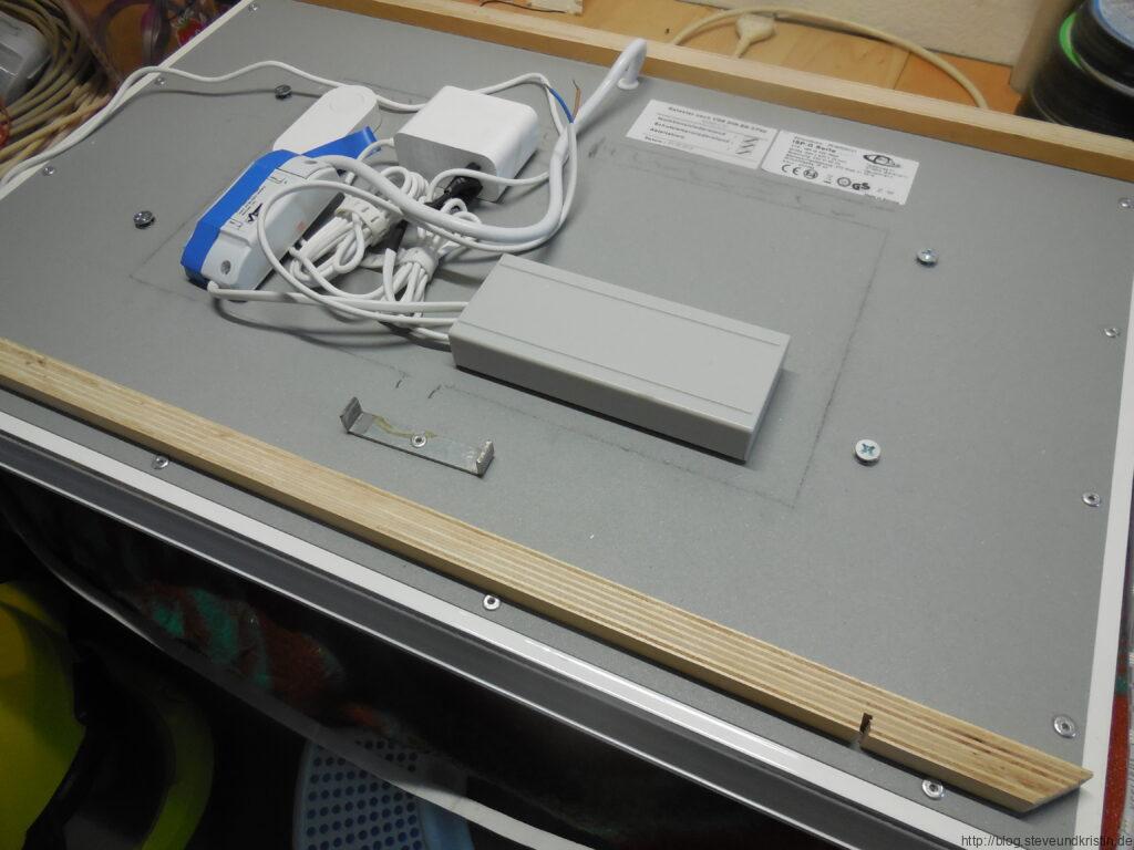 Die Heizung wird auf der Rückseite nur geringfügig warm, daher ist es unbedenklich dort die Elektronik anzubringen. Das ist ein klarer Vorteil und somit ist alles an einem Ort. Der Decken- bzw. Wandhalter hat eine gute Tiefe, damit ist auch genügend Platz. Die Montage an der Decke ist etwas mühselig, da man genau die Löcher treffen muss und die Heizung nicht gerade leicht ist.