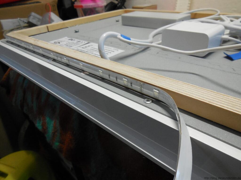 Nachdem die Sanierung des Gäste WC (1,2 m²) anstand und keine „normale“ Heizung in dem kleinen Raum ohne großen Aufwand möglich gewesen wäre, kam mir eine Infrarotheizung in den Sinn. Diese gibt es in verschiedenen Ausführungen, unter anderem auch als Deckenelement. So kann man relativ leicht eine Heizung unauffällig installieren und an der Decke gibt es schon einen Stromanschluss. Nur noch eine Frage stand im Raum, wie die Deckenleuchte ersetzen. Eine Alternative zur Deckenleuchte wäre nur ein Wandleuchte. Also kam die Idee auf, die Infrarotheizung mit einem Lichtelement zu kombinieren. Schnell fiel die Wahl auf ein LED Streifen. Das Ergebnis kann sich sehen lassen…